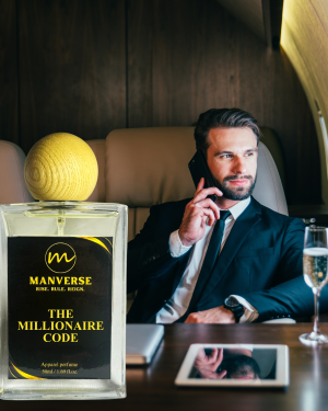 The scent of ultimate success. The Millionaire Code by MANVERSE is an opulent, apparel-activated fragrance designed for those who aim for the top. With a blend of rare spices and deep golden resins, this scent bonds to your clothing to project an aura of wealth, confidence, and power that lasts all day and night. Crack the code to greatness.